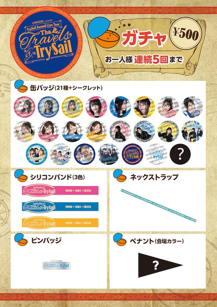 「LAWSON presents TrySail Second Live Tour “The Travels of TrySail”」ガチャ第2弾発売!「LAWSON presents TrySail Second Live Tour “The Travels of TrySail”」ガチャ第2弾を4月8日(日)北海道・わくわくホリデーホール(札幌市民ホール)より発売いたします。来場の記念に是非お買...